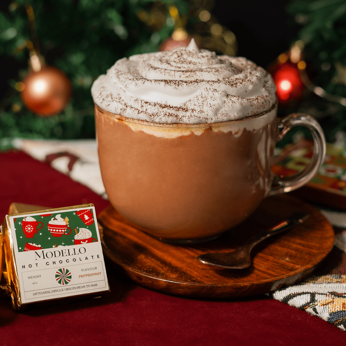 With its refreshing peppermint aroma and single-origin cacao, this limited-edition treat fits beautifully into curated Christmas gift hampers, festive assortments, and premium corporate gifting collections across Bangalore. Recognised as one of the most trusted craft chocolate brands in the city, Modello Chocolate showcases the natural depth of cacao and the careful balance between cocoa solids and cocoa powder that gives fine chocolate its velvety finish.